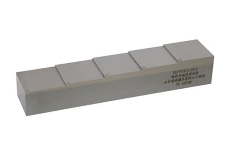 堆焊层侧测厚用试块依据NB/T47013-2015 标准 承压设备奥氏体不锈钢、镍合金等堆焊层厚度测量方法的要求而设计,适用于超声测厚仪用双晶直探头从堆焊层侧进行测量的校准。