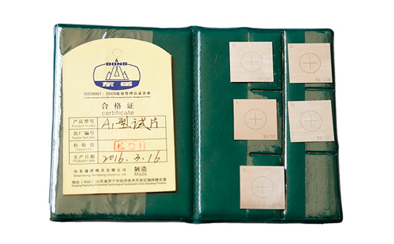 标准试片有A1、C型、D型、M1型试片主要用于检验磁粉检测设备、磁粉和磁悬液的综合性能,显示被检 工件表面具有足够的有效磁场强度和方向、有效检测区以及磁化方法是否正确。