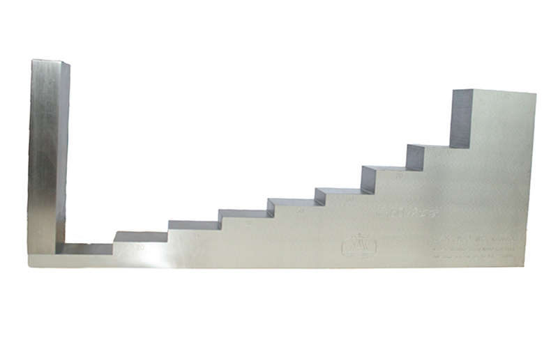 铁路工务系统无损检测用试块,带把阶梯试块由不同深度的台阶形状,主要用于测定0度探头(即直探头)的距离幅度特性。